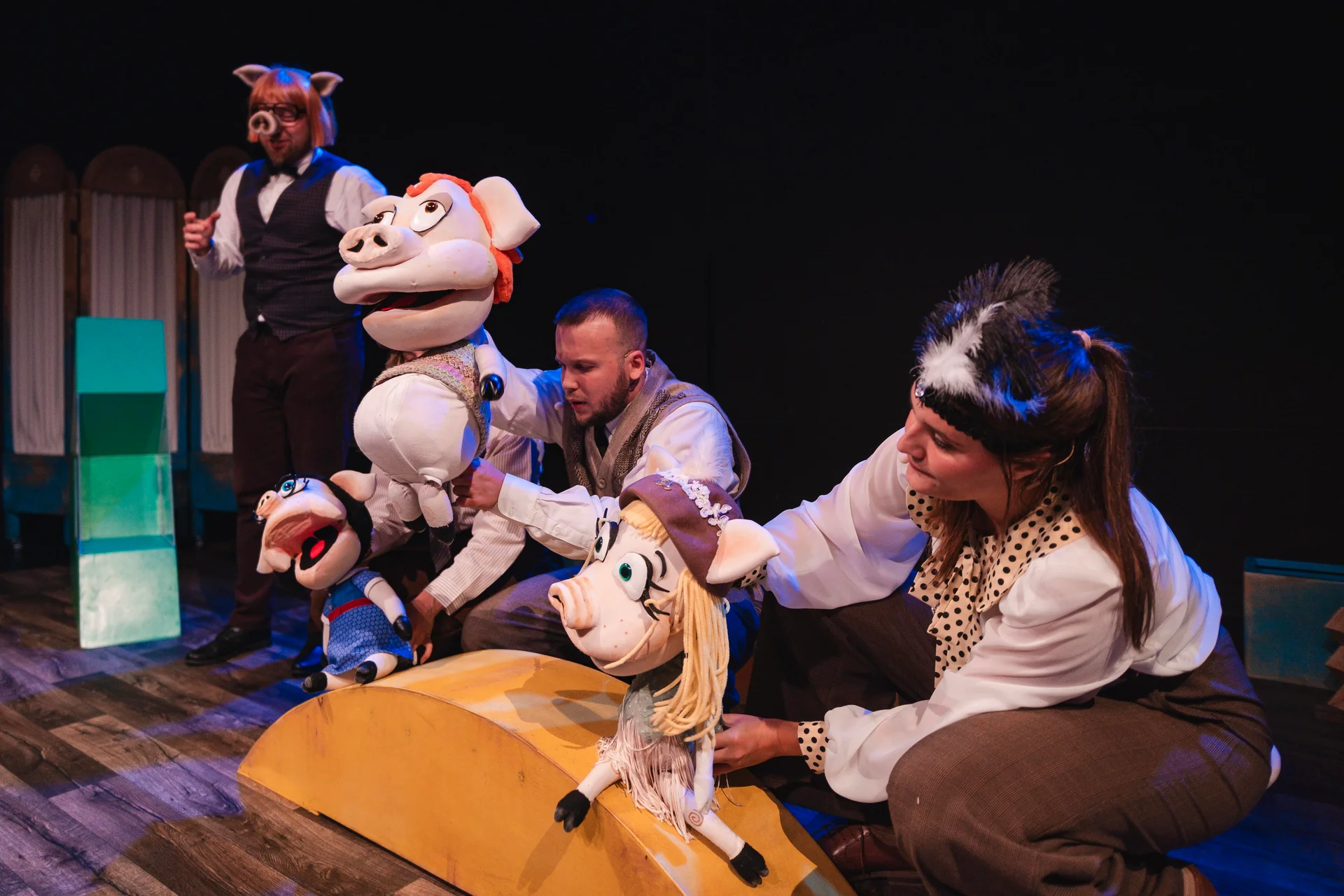 Mali widzowie mogą zobaczyć dom ze słodyczy i żelków, baniek mydlanych i stworzony z niezwykłą architektoniczną precyzją przez Mądralinkę. Jest kolorowo i wesoło, bo nasze świnki uwielbiają śpiewać i psocić!